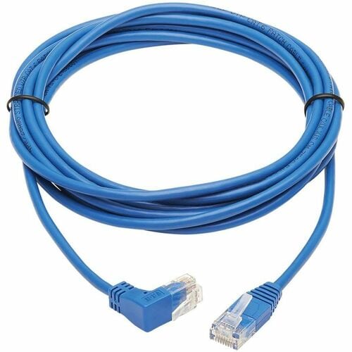 This up-angle Cat6 Ethernet cable features a blue PVC jacket and molded blue ends. The color-coding allows easy, fast identification in a crowded rack or workstation and helps prevent the cable from becoming inadvertently disconnected.