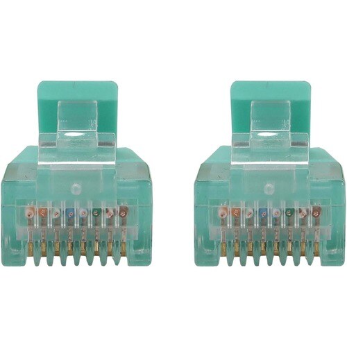 The cable has an aqua PVC jacket, which is easy to identify quickly in a crowded patch panel or switch and helps prevent the cable from becoming accidentally disconnected.
