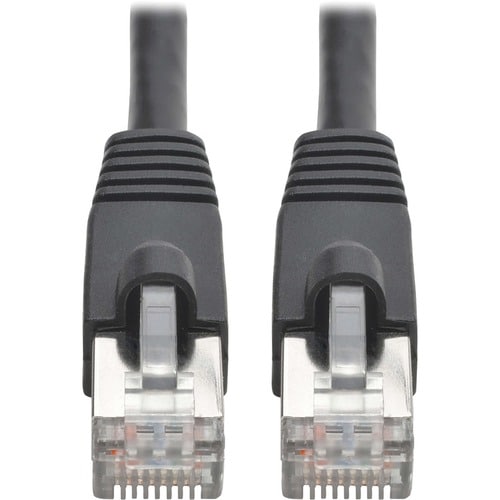 High-Speed Cat6a STP Patch Cable Ideal for Your 10GBase-T Ethernet Network Designed for fast transmission and excellent signal quality, this 30-ft. (9.14 m) Cat6a cable ensures peak performance throughout your local area network (LAN). It transmits 10 Gbps data, voice and video through high-speed 10G equipment, including network switches, modems, routers, adapters, hubs and patch panels. It reduces impedance and structural return loss compared to standard 100 MHz wire. Supports Power over Ethernet (PoE) to Cut Down on Power SuppliesBecause this Cat6a shielded cable supports PoE, it can supply the power to operate compatible PoE devices, such as security cameras, VoIP telephones, point-of-sale kiosks and access control devices. This saves you the expense and effort of purchasing, connecting and installing individual power supplies for each device. Premium Protection from EMI/RFI Line Noise Helps Your Equipment Perform BetterVarious electromagnetic and radio sources found in virtually every home and business can cause disruptive interference on the AC line. Known as EMI (electromagnetic interference) and RFI (radio frequency interference), this line noise is a common cause of performance problems. The N262-030-BK shields against disruptive line noise that can disturb your electronics and inflict hardware damage or data loss. This EMI/RFI filtering also helps your connected components perform better and last longer. Snagless RJ45 Male Connectors Add Extra Protection During InstallationThe RJ45 connectors' snagless design protects the locking tabs from being damaged or broken off during installation. The ends are shielded to minimize near-end crosstalk (NEXT) levels. Integral strain relief gives the N262-030-BK extra flexibility, reduces stress, and helps the cable move freely without cracking or breaking loose from the connector. Color-Coded to Avoid Misidentification That Can Cause Costly DowntimeThis Cat6a STP patch cable features a black PVC jacket. The color-coding allows easy, fast identification in a crowded rack or workstation, preventing technicians from accidentally disconnecting the wrong cable.