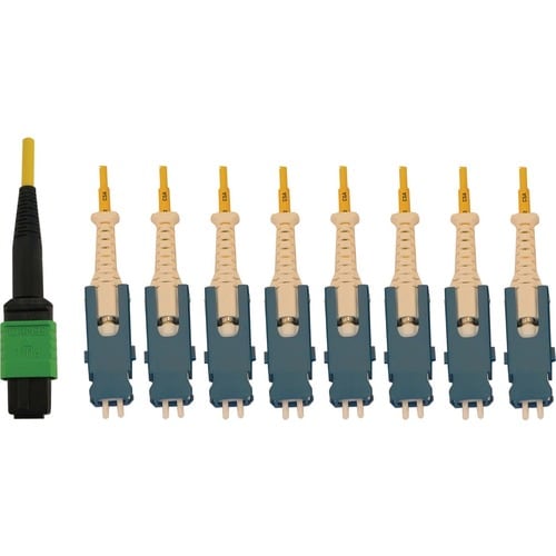 The N390-03M-8S-AP is a premium singlemode fiber optic cable that supports 400 Gb Ethernet speeds for transmitting data and voice signals over short distances. As the amount of traffic in data networks grows, so does the need for next-generation devices and fiber cables to support much higher bandwidths in cloud services, hyperscale data centers, telecom applications and equipment OEM companies. This OS2 breakout cable is an ideal choice for 400 Gb Ethernet applications. It is also backward compatible with 40 Gb and 100 Gb networks, so you can future-proof your current application for an eventual upgrade to 400 Gb.