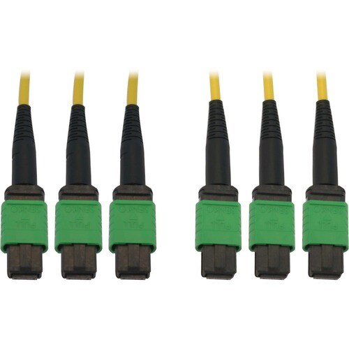 The factory-terminated 8-fiber MTP/MPO APC connectors help minimize back reflection with low insertion loss. The connector's slim boot and green housing allow easy one-handed installation and removal of the cable.