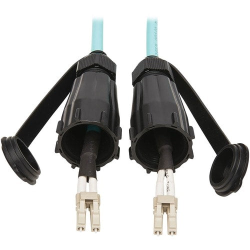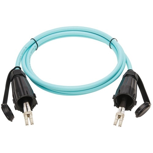 This 6.6-foot (two-meter) 50/125 OM3 LC/LC IP68-rated outdoor cable is ideal for connecting 10G Ethernet fiber networks in outdoor applications and other areas where protection from harsh elements is essential, such as factories, warehouses, recycling plants, machine shops and other dusty environments. The rigid, durable cable and small-form-factor LC duplex connectors withstand dust, debris and moisture that could threaten your IT infrastructure. Included dust caps are located at both ends for protection from dust and debris when the connectors are not in use.