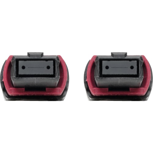 The five-meter N845-05M-12-MG MTP/MPO Multimode Patch Cable supports 40/100 Gb Ethernet speeds and is designed for high-density connections between network equipment in telecommunication rooms and data centers. With two female MTP/MPO connectors, this OM4-rated multimode fiber optic cable is recommended for high-density fiber patching between data center MDFs (main distribution frames) and IDF (intermediate distribution frames). It's colored magenta for instant identification as an OM4 cable.The 12-fiber MTP/MPO connectors are about the same size as SC connectors, but are 12 times denser, freeing up circuit card and rack space for other cables. The cable is tested for low insertion loss and back reflection on every connector and attenuation loss that meets or exceeds current standards. Push/pull tab connectors are easily accessible in high-density data center applications and make the cable easy to install and remove with one hand. The plenum-rated jacket is perfect for connecting high-speed network components in ceilings, walls and ducts.