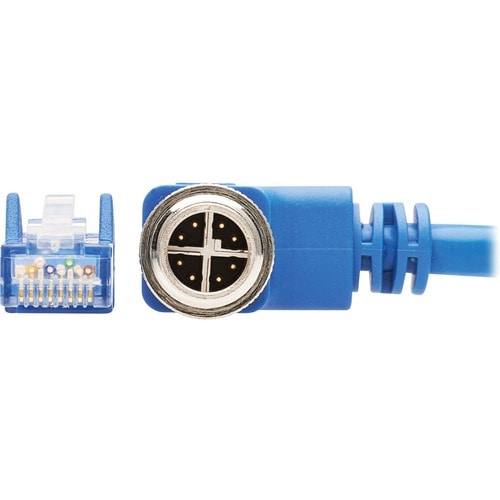 This M12 X-Code cable connects Gigabit Ethernet networks in wet/humid environments, places subject to vibration and other areas where protection from harsh elements is essential, such as factories, warehouses, recycling plants, airports, railways and machine shops. The circular M12 connector with 12-millimeter locking thread is especially designed for washdown and corrosive applications, including agriculture, alternative energy, communications, factory automation, measurement and control, robotics, transportation and food/beverage facilities.