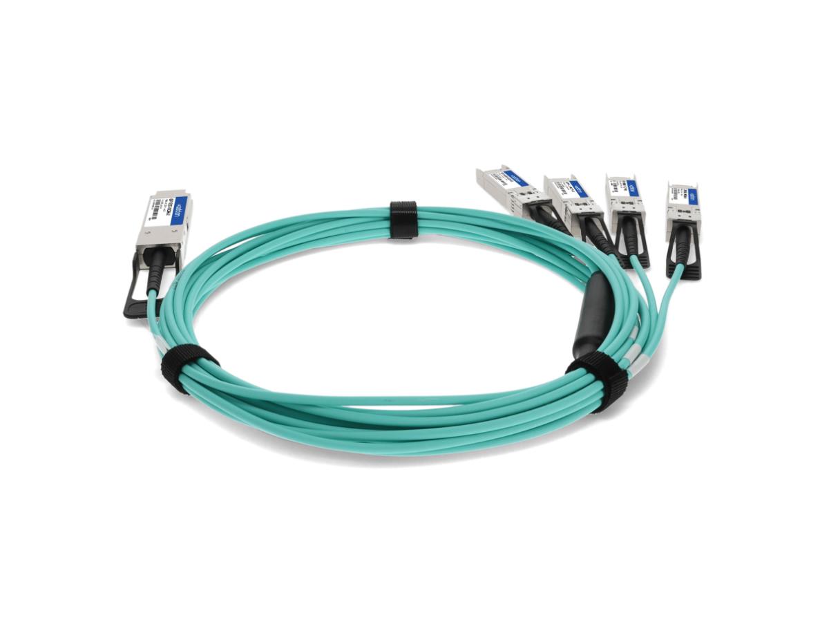 Cisco QSFP-4X10G-AOC2M compatible 40GBase-AOC QSFP+ to 4xSFP+ direct attach cable (850nm, MMF, 2m). A 100% Cisco compatible 40GBase-AOC QSFP+ to 4xSFP+active-optical direct attached cable that operates at 850nm over multi-mode fiber, with a maximum reach of 2.00m (6.56ft). This Cisco compatible active-optical cable has been programmed, uniquely serialized, and data-traffic and application tested to ensure it is 100% compliant and functional. Our direct attached cable will initialize and perform identically to Cisco's cable and is built to meet or exceed Cisco's specifications, and comply with MSA (Multi-Source Agreement) standards. The actual part shipped may have a different part number, but will be functionally identical and 100% compatible. Trade Agreements Act (TAA) versions of this part are available.