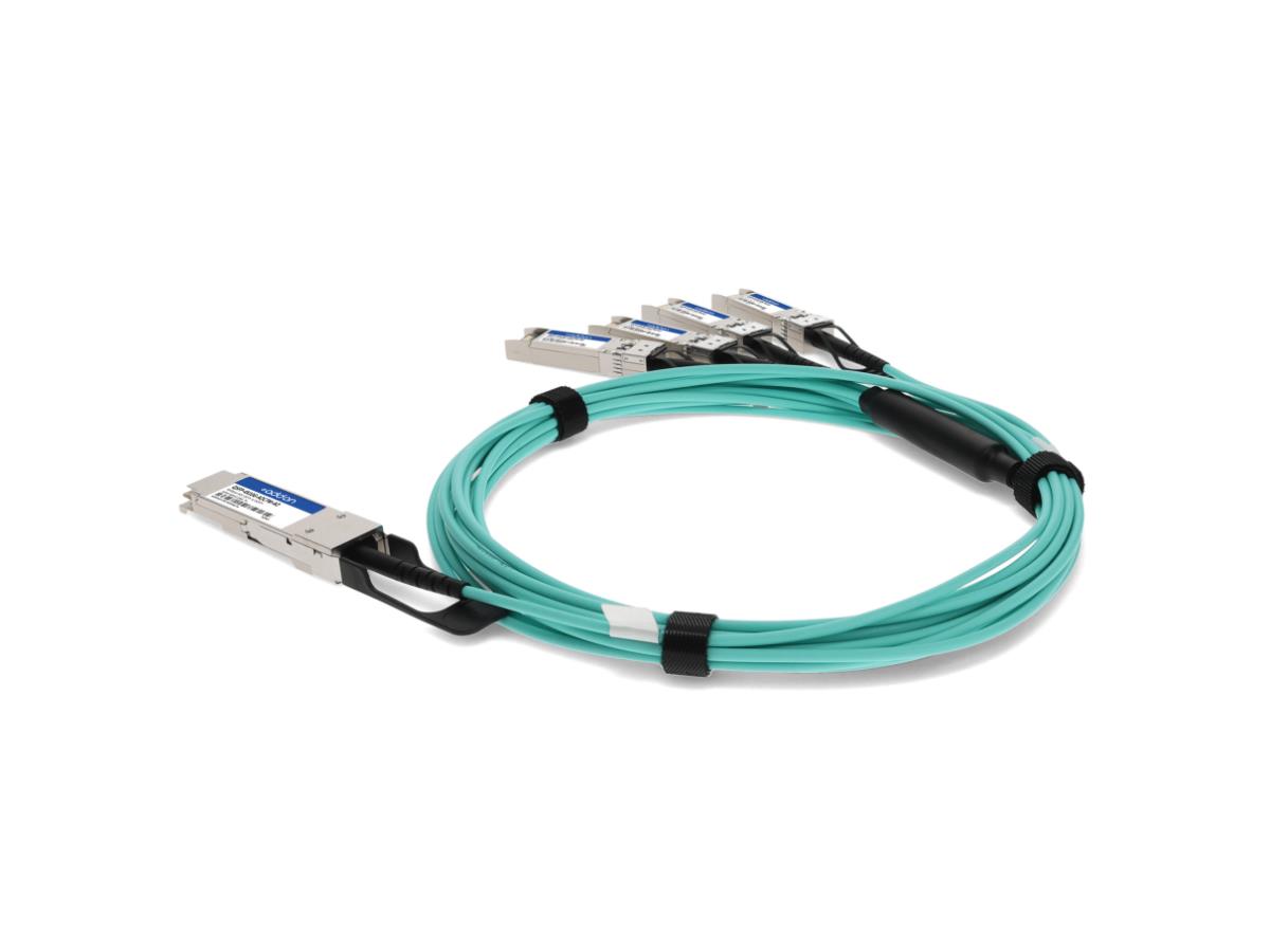 Cisco QSFP-4X10G-AOC7M compatible 40GBase-AOC QSFP+ to 4xSFP+ direct attach cable (850nm, MMF, 7m). A 100% Cisco compatible 40GBase-AOC QSFP+ to 4xSFP+active-optical direct attached cable that operates at 850nm over multi-mode fiber, with a maximum reach of 7.00m (22.97ft). This Cisco compatible active-optical cable has been programmed, uniquely serialized, and data-traffic and application tested to ensure it is 100% compliant and functional. Our direct attached cable will initialize and perform identically to Cisco's cable and is built to meet or exceed Cisco's specifications, and comply with MSA (Multi-Source Agreement) standards. The actual part shipped may have a different part number, but will be functionally identical and 100% compatible. Trade Agreements Act (TAA) versions of this part are available.