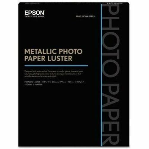 Epson Photo Paper - Letter - 8 1/2" (215.90 mm) x 11" (279.40 mm) - Metallic, Luster - 25 SheetDue to the high efficiency of liquid ink spray onto paper, inkjet printer produces great images With luster finish, get fewer glare images with perfect sharpness