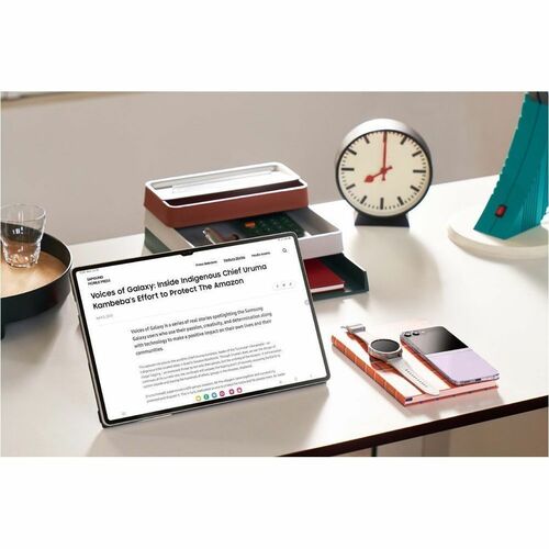 We rebuilt the included S Pen to be IP68 water resistant just like the tablet. It's also improved across the board, with enhanced tip sensitivity for less accidental clicks. And with the magnetic attachment and bidirectional charging, just snap it on to charge.