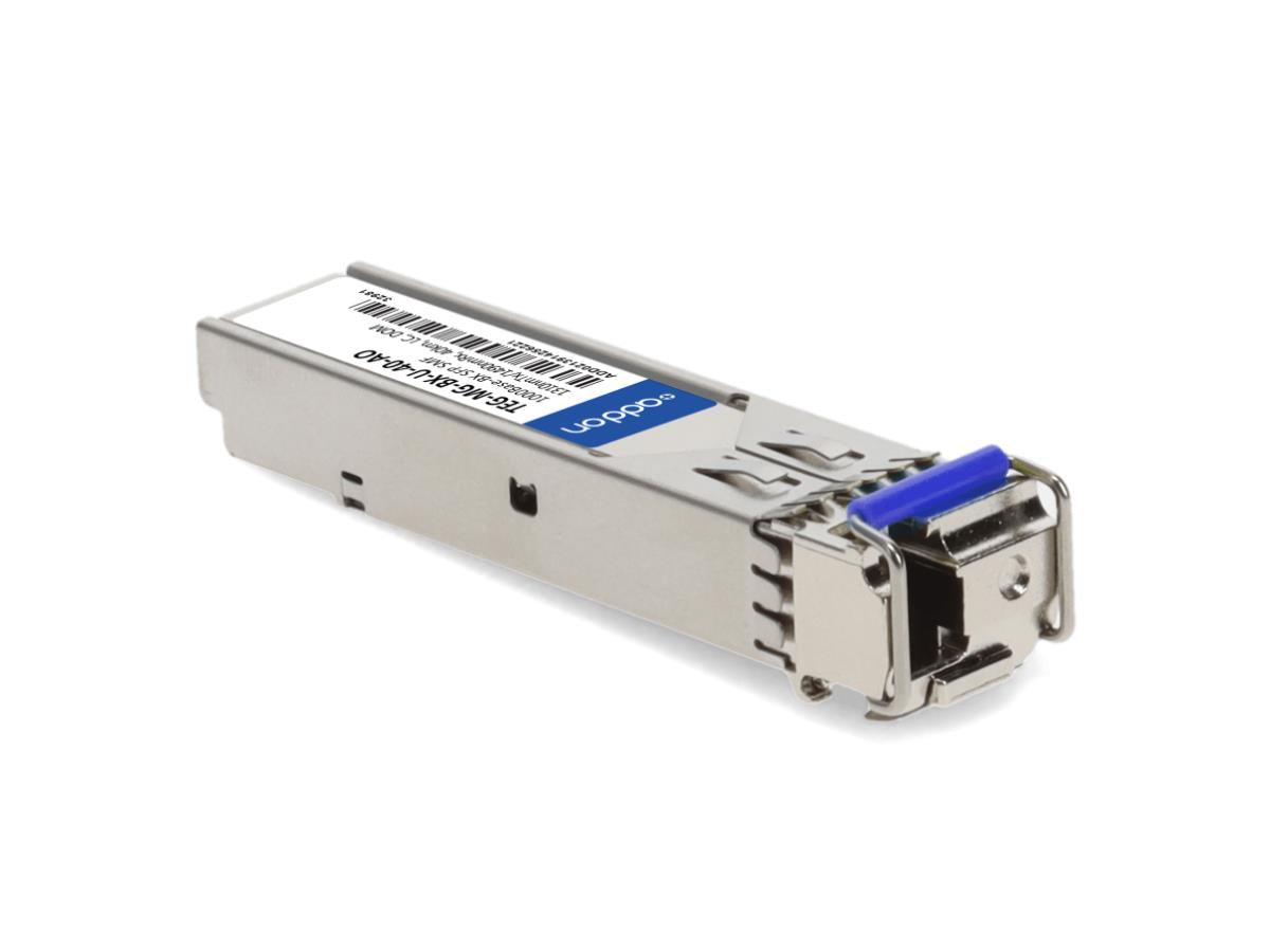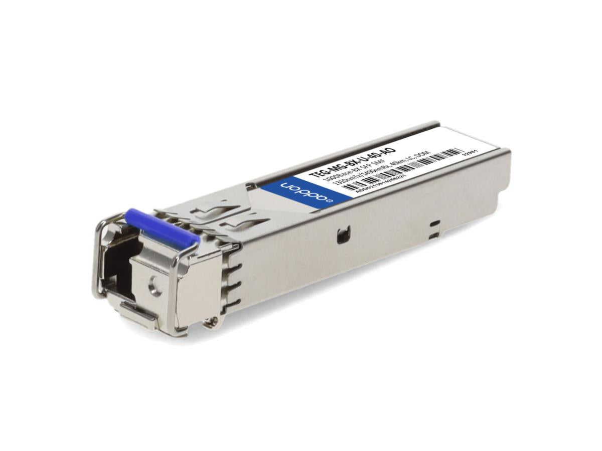This TRENDnet compatible SFP transceiver provides 1000Base-BX throughput up to 40km over single-mode fiber (SMF) at a bidirectional wavelength of 1310nmTx and 1490nmRx using a LC connector. Digital optical monitoring (DOM) support is also present to allow access to real-time operating parameters. Our transceiver is guaranteed to be 100% compatible with the equivalent TRENDnet transceiver. This easy to install, hot swappable transceiver has been programmed, uniquely serialized and data-traffic and application tested to ensure that it will initialize and perform identically. It is built to meet or exceed the specifications of TRENDnet, as well as to comply with multi-source agreement (MSA) standards to ensure seamless network integration. We stand behind the quality of our products and proudly offer a limited lifetime warranty. Trade Agreements Act (TAA) versions of this part are available upon request.