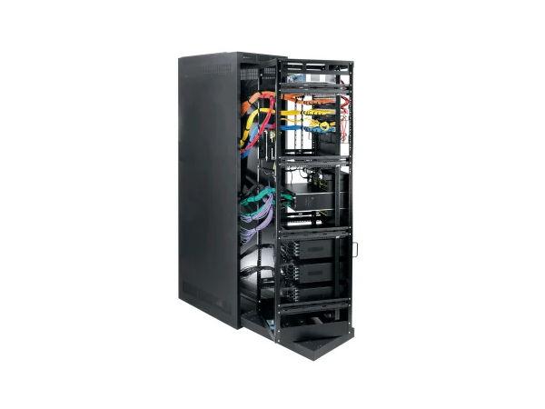 The WR Series was designed to provide rear access for equipment even when the equipment bays are placed up against a wall or back to back. Factory-assembled in its own host enclosure, the rack frame pulls out and rotates for service access. Specify a WR Series enclosure when easy access to rear equipment connections is required for larger audio, video and security equipment installations but an access aisle is not practical.